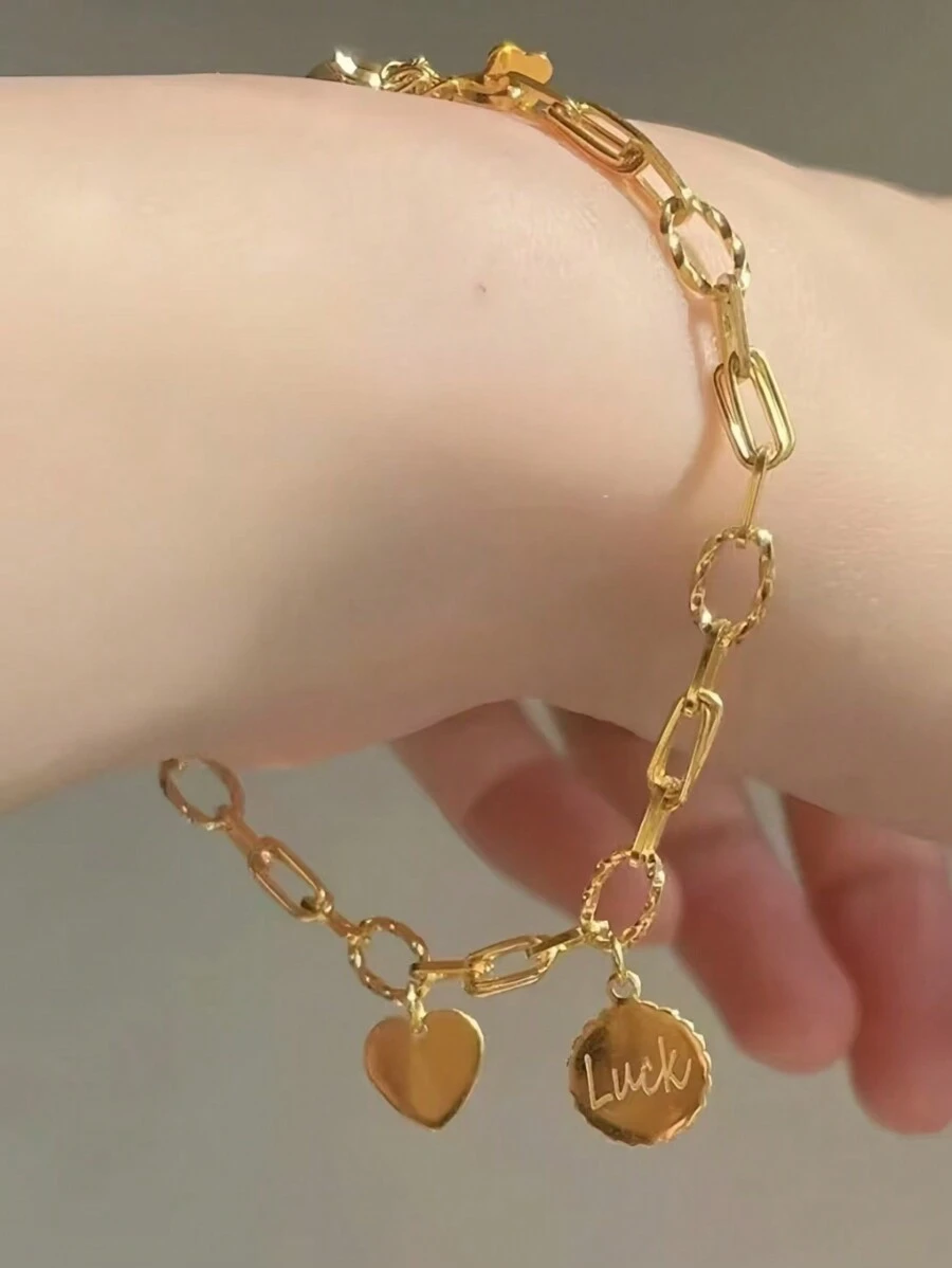 纯银LUCKY爱心圆环手链女新款时尚几何回形针设计小众轻奢手饰
