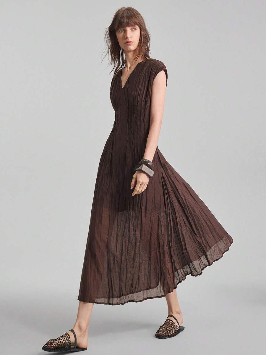 Ontre 2025 年夏季女装连衣裙,适合独立日、圣约翰节、海滩、度假、毕业典礼、办公室、沙滩装,休闲纯色无袖中长连衣裙,带扭褶