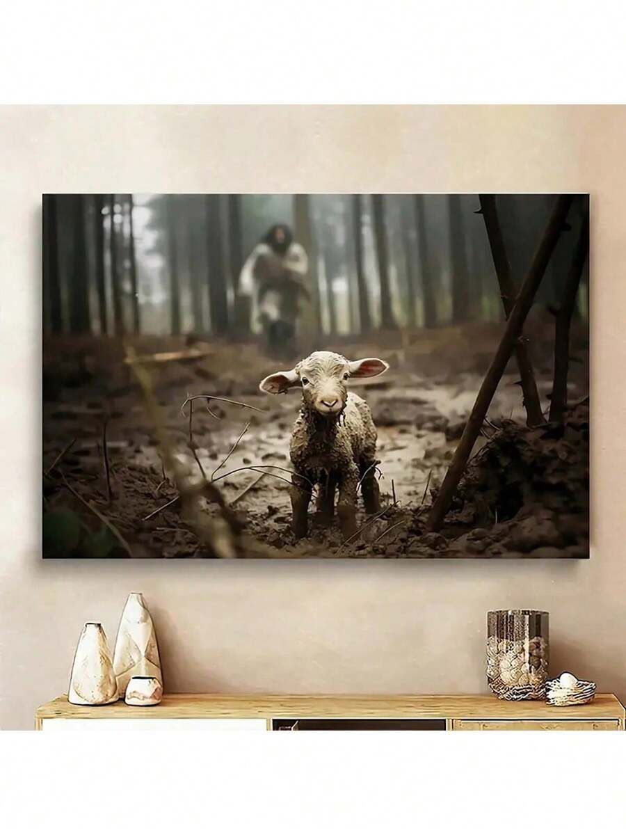 1 幅基督将拯救羔羊墙面艺术帆布印刷品,经典墙面艺术,适合客厅、卧室、厨房装饰,可选画框