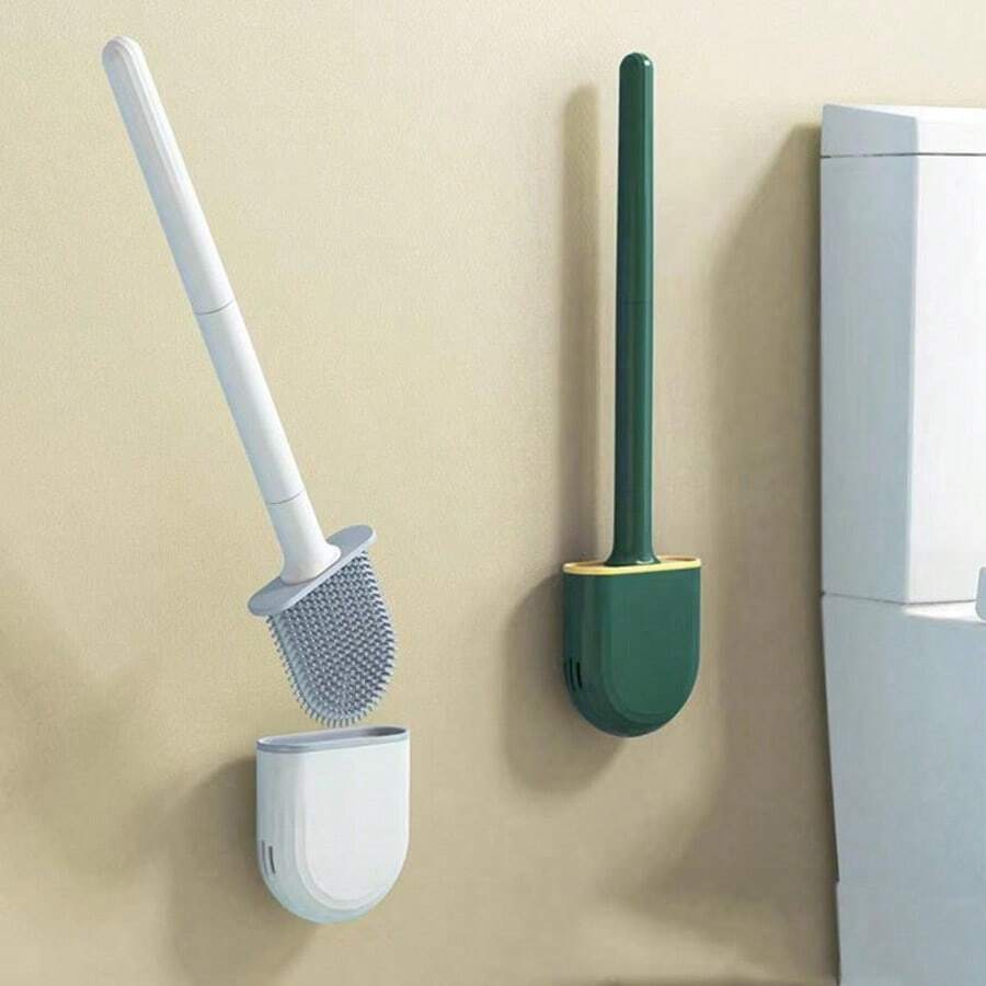1 件硅胶马桶刷,紧凑型家用壁挂式清洁刷,可拆卸长柄马桶刷,带通风孔,防漏,平头,软毛,快干,PP,TPR