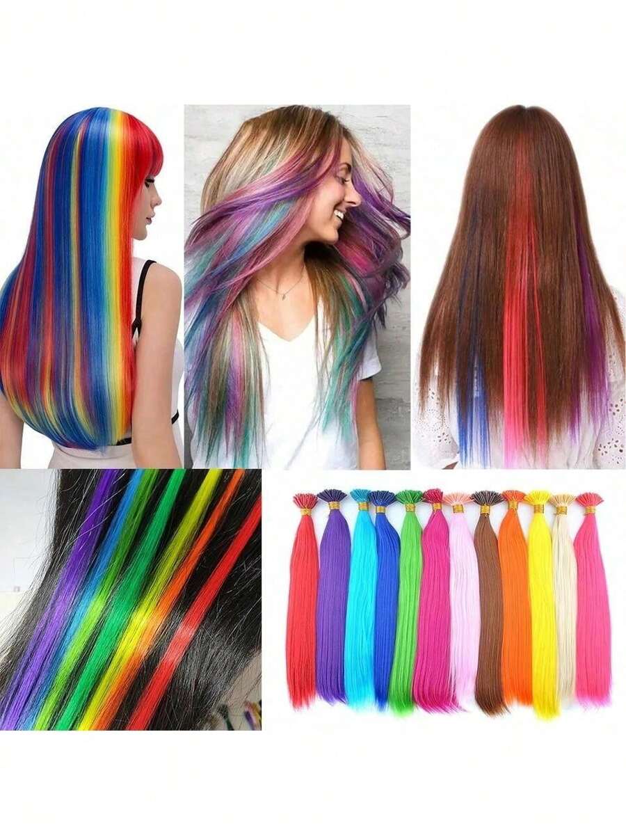 彩虹合成彩色 I-Tip 羽毛隐形接发 50 股头发,50 个接发环,1 个钩针/包合成染发剂彩虹假发彩色 Kanekalon I-Tip 角蛋白融合接发发束,适合女性和儿童 - 礼物、角色扮演、派对、万圣节和圣诞节亮点