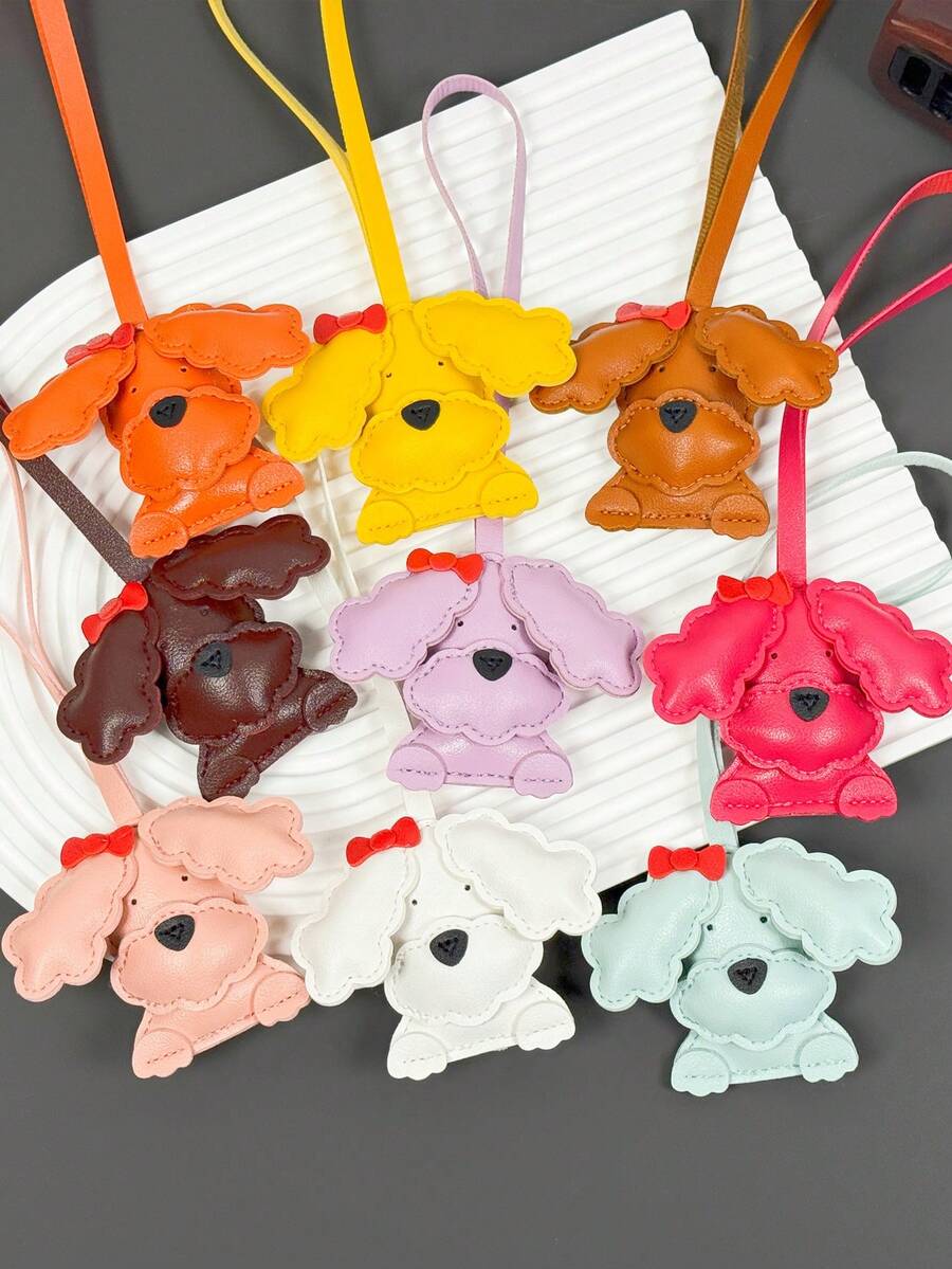 可爱泰迪狗钥匙扣吊坠独特个性化 PU 皮革包饰配件多功能礼物背包装饰