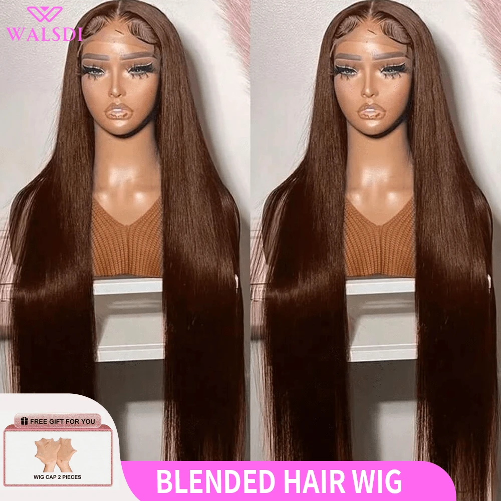 200% 密度直发鲍勃假发巧克力棕色前部无胶假发巴西处女混合人发混合发质女士,4*4 5*5 13x4 13x6 混合发骨直发预拔预剪高清蕾丝闭合假发稳固贴合女性日常风格耐高温纤维合成假发自然发际线易于造型