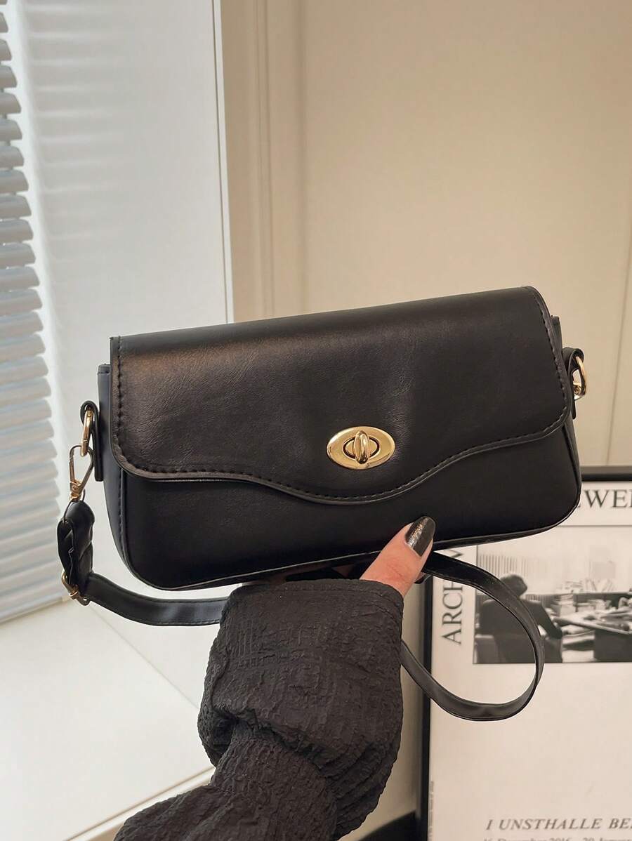 时尚新款纯色翻盖五金扣手提单肩包,经典优雅,简约实用的方形女士斜挎包,适合购物、钱包、逛街、年轻女性、大学生、新人、白领人士。非常适合办公室、大学、工作、商务、通勤、户外活动、旅行和郊游