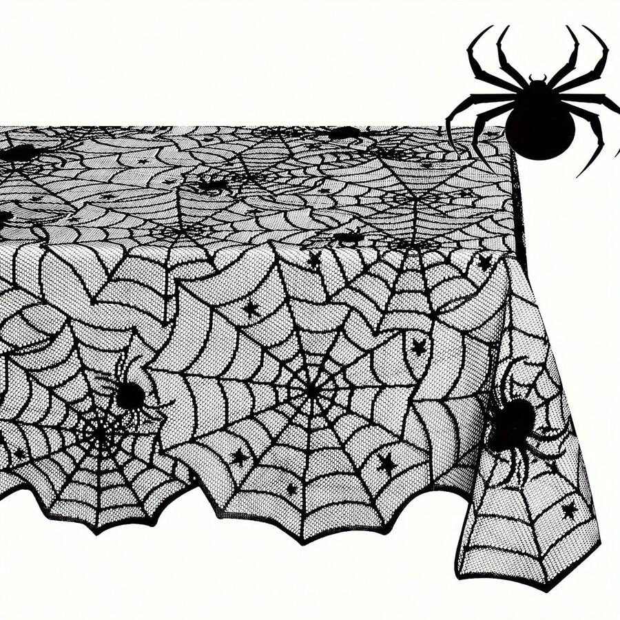 1 件黑色蕾丝蜘蛛网桌布 - 万圣节蜘蛛网装饰,带有蜘蛛、南瓜、鬼魂和蝙蝠,适用于万圣节桌旗桌布壁炉架、厨房和派对餐桌布置派对聚会桌布,用于餐桌装饰家居装饰万圣节装饰秋季装饰房间装饰秋季装饰
