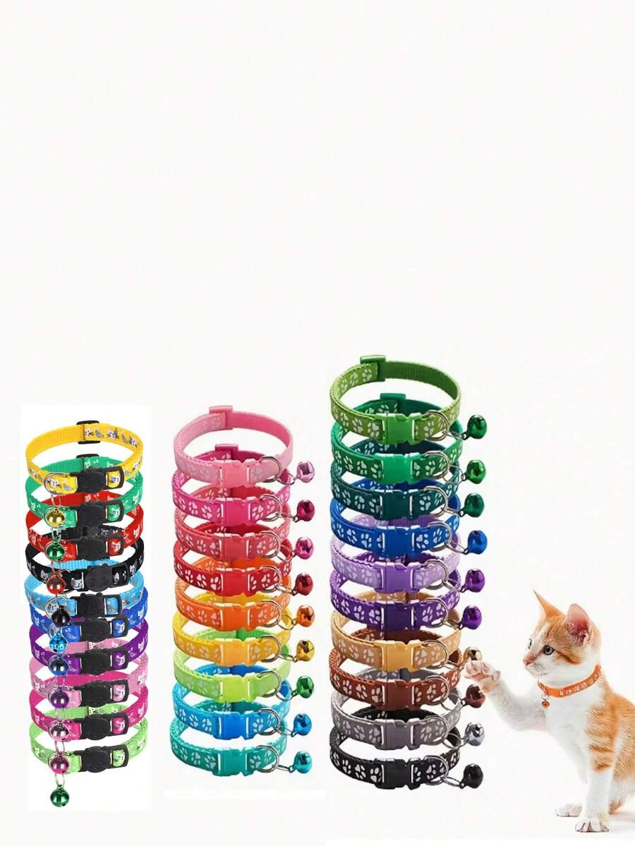 宠物猫项圈,防窒息可调节安全扣猫项圈,适合小型猫狗,10个装,随机款式