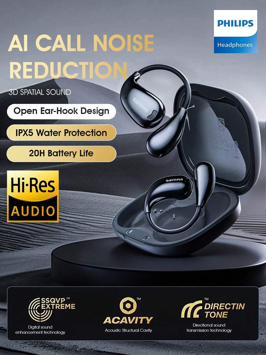 Philips 2025 New Wireless Bluetooth Earbuds, Over-ear Hook Style, Open-ear Earbud-free Design, Sports, High Sound Quality, Long Battery Life, Noise Cancellation, TAT2769