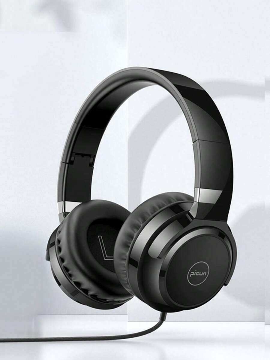 Picun C60 附麥克風的有線貼耳式耳機,輕巧可折疊便攜式立體聲低音耳機,帶 1.5m 無纏結,適用於智慧型手機平板電腦 Mp3 / 4 的有線耳機(深空黑色)