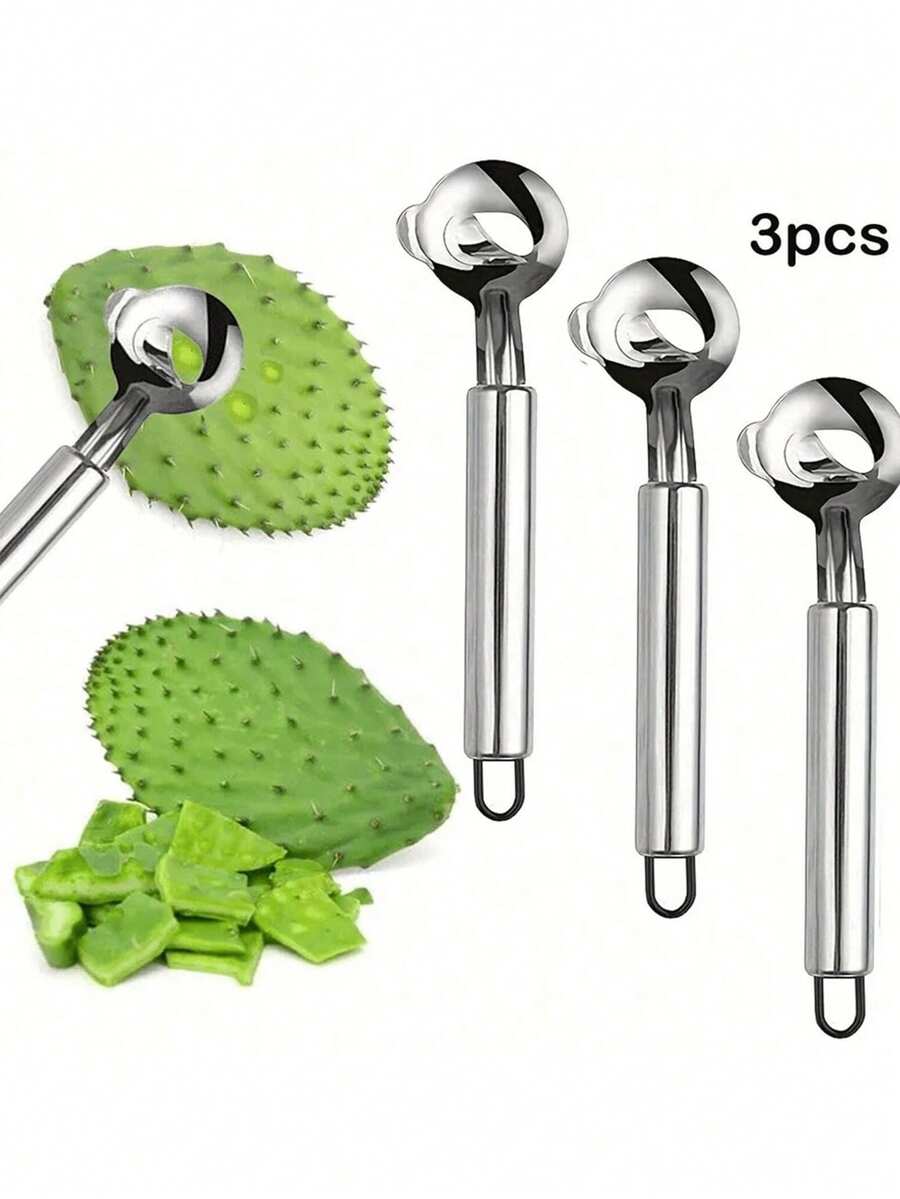 仙人掌削皮器套装 - 不锈钢水果蔬菜削皮器、勺子瓜球器和去籽器 - 适用于家庭和餐厅的易于使用的厨房小工具