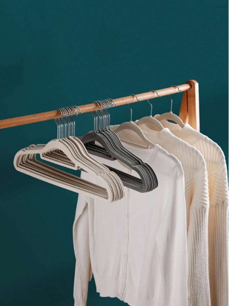[存储和组织 - 新款衣架] 8 件植绒衣架,防皱整理专家,防滑衣架,加厚裤架,节省衣柜空间的存储,成人植绒衣架,防止肩部变形,可堆叠衣架,重型夹克衣架