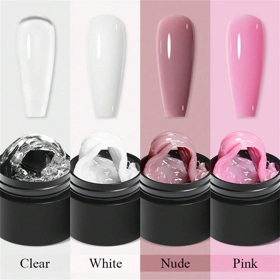 4支装 7毫升 不粘手型 固体延长指甲油 透明 白色 裸色 雕刻花朵 美甲 UV凝胶 丙烯酸指甲油