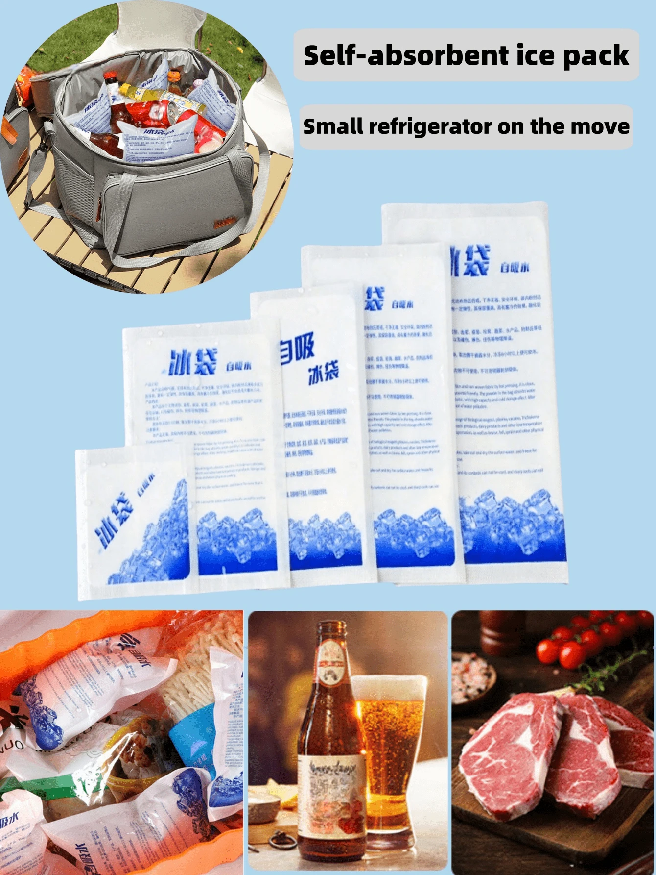 50/30/10pcs自吸水冰袋可重复使用,适用于露营、海滩派对、节日、餐厅、鸡尾酒会、海鲜冷藏保鲜、运输、蔬菜保鲜、肉类保鲜、瓜果保鲜、一次性无水保鲜速冻冷藏保鲜冰袋。