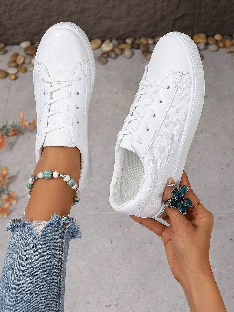 秋冬大码女式白色系带运动鞋,休闲平底滑板鞋,时尚舒适运动鞋