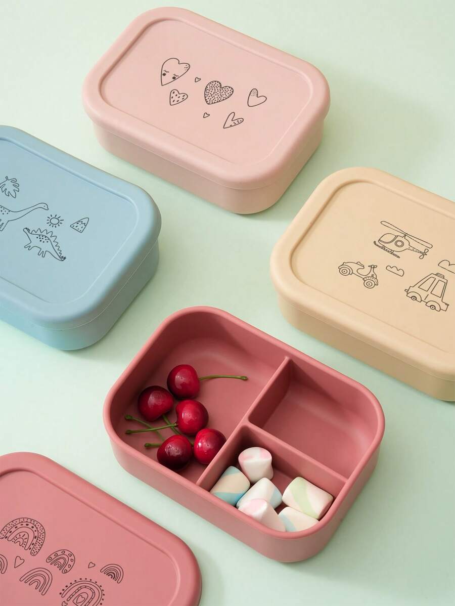 • PopLittleOne 1件装婴儿硅胶午餐盒星星恐龙心彩虹图案婴儿餐具三格婴儿收纳盒宝宝洗澡礼物 - 彩色 - 查看 21