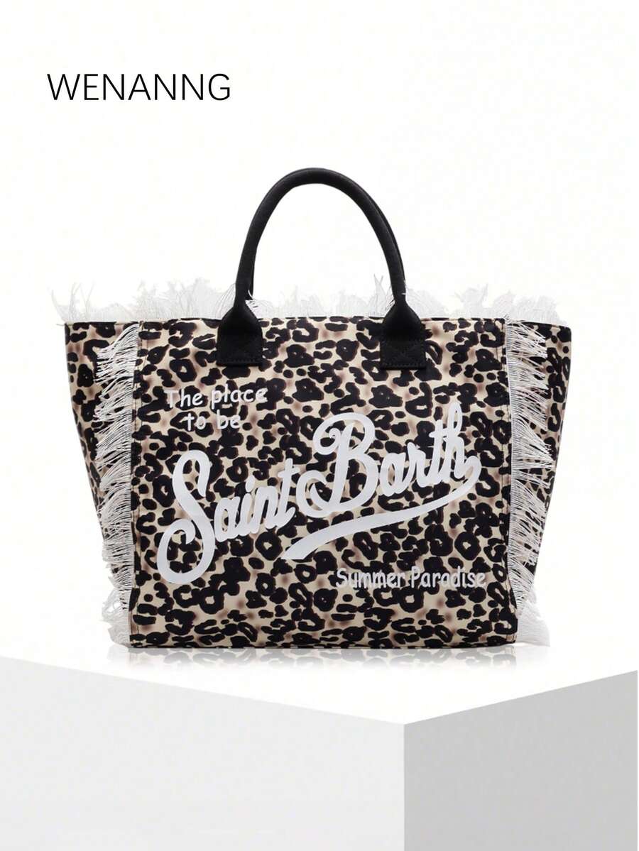 1 件时尚女士条纹托特包字母印花和原始下摆设计单肩包大容量休闲沙滩通勤手提包女士/女孩日常使用/购物/度假/旅行