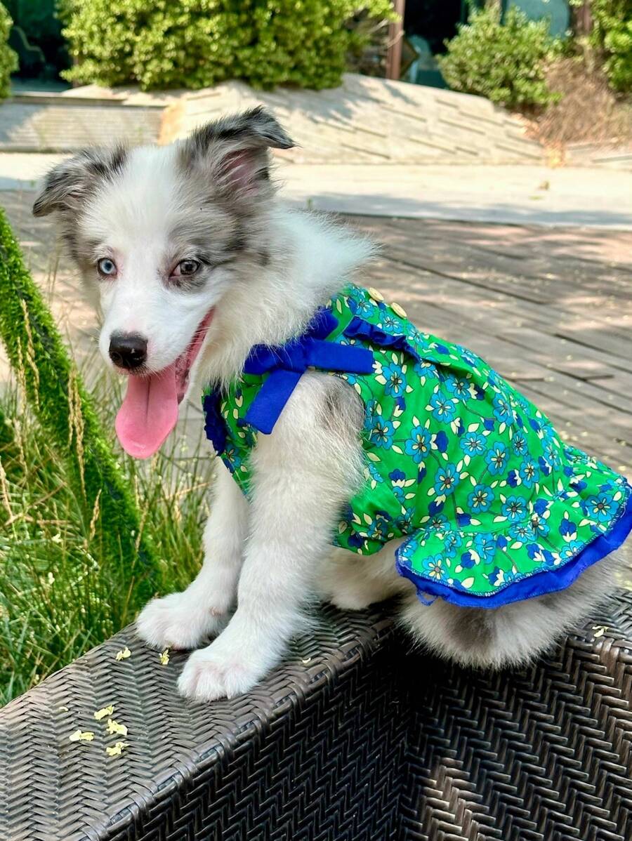 新款宠物服装,狗狗衬衫,马耳他泰迪背心,碎花蝴蝶结领口连衣裙