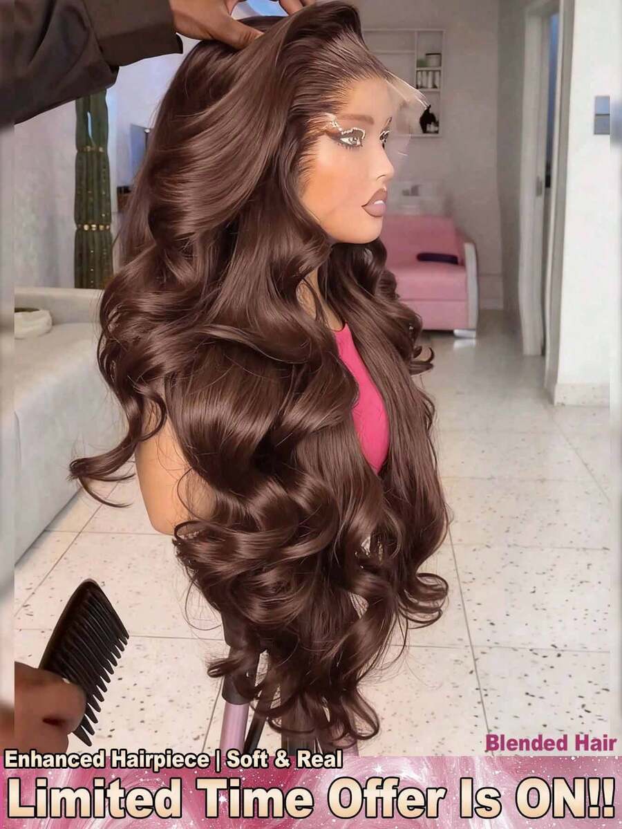 即戴即走,200% 密度,34 英寸真发,5*5、13*4、13*6 波浪卷蕾丝前假发 - 预先修剪、预先拉直、预先熨烫,巴西原生高清透明蕾丝前假发,无需胶水 - #4 巧克力棕色,无需胶水,无需技巧,蕾丝闭合假发,前额无胶假发 - 预先拔毛、预先漂白,耳到耳波浪卷,自然波浪