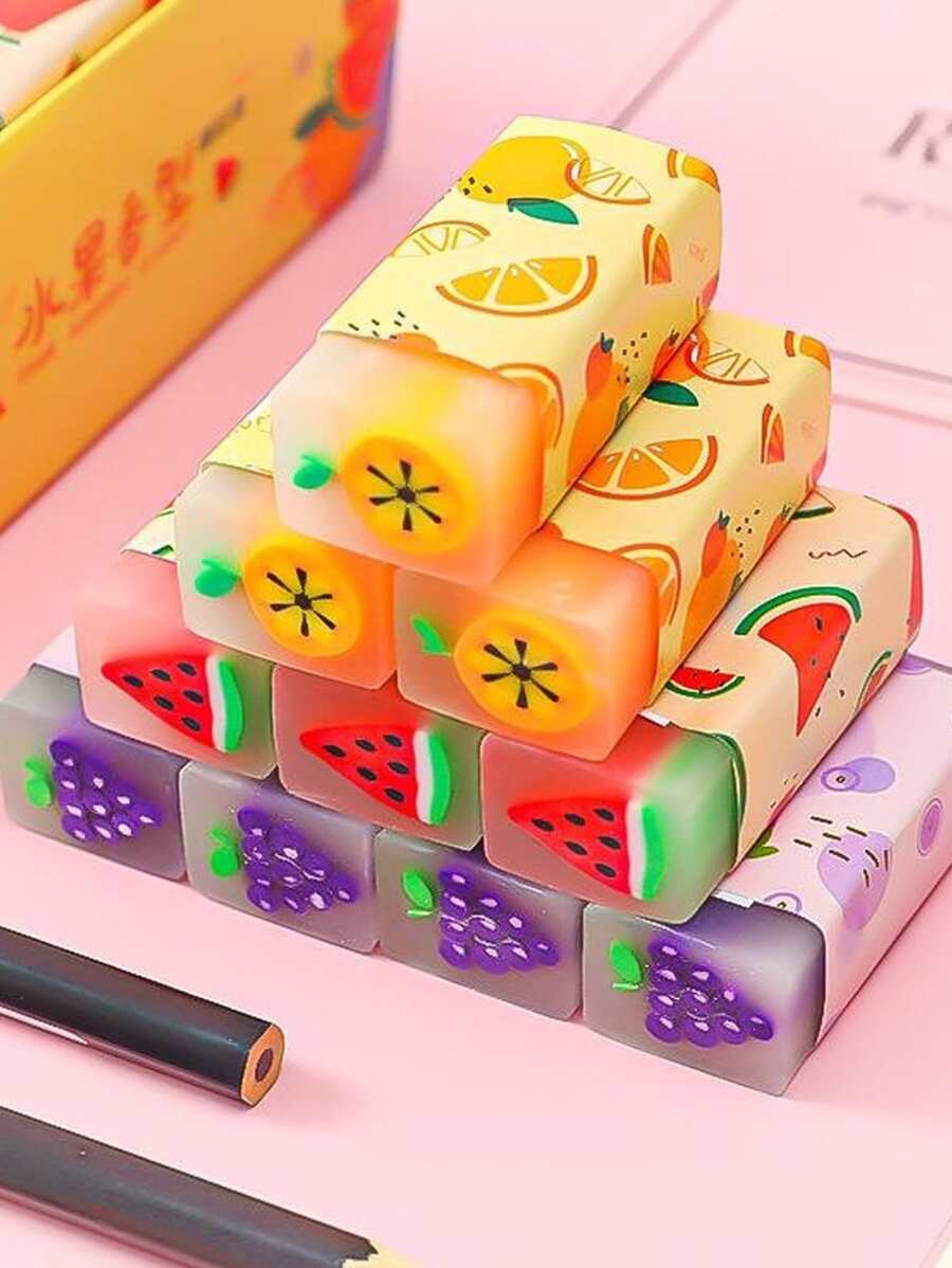 颜色随机 1 件/3 件/6 件 可爱卡通水果香味橡皮擦 学生奖励 学习用品 办公文具礼品 返校