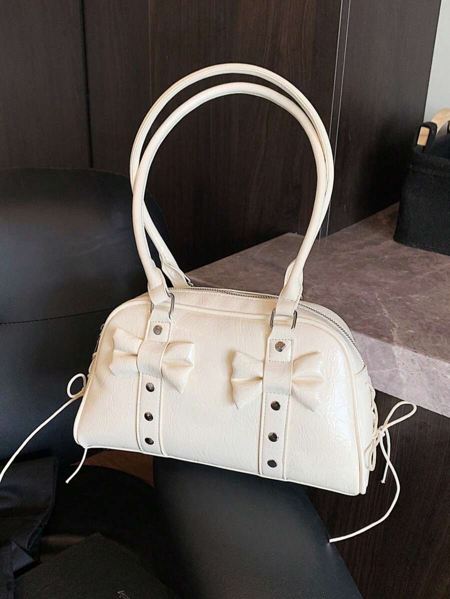 女士复古保龄球包,PU皮革材质,简约纯色手提包,多功能单肩斜挎包,适合工作、通勤、约会、派对等场合,时尚女士波士顿包