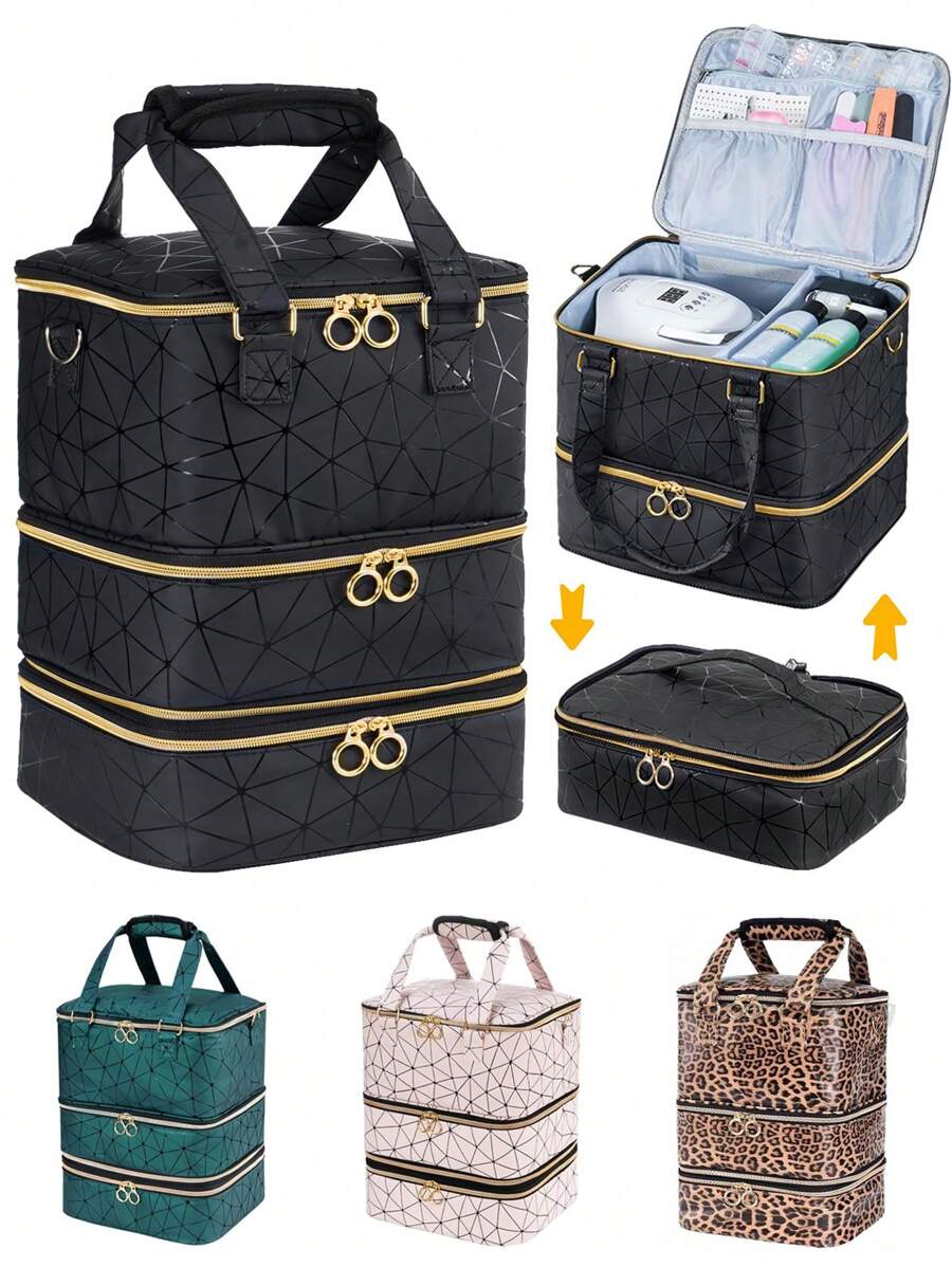 时尚指甲油收纳包可容纳 60 瓶指甲油和指甲灯、凝胶指甲油收纳包和储物盒、美甲工具、美甲套装用品收纳盒、PU 皮革美甲灯套装用品收纳包旅行装、双指甲收纳包和收纳盒(带支架和肩带)、送给朋友的理想礼物