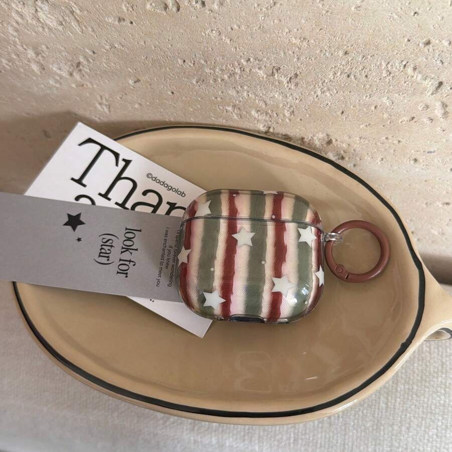 复古半透明撞色红绿条纹星星挂环耳机保护套,兼容 Pro 2,可爱简约 Apple 4 新款半代耳机保护套(女士款)