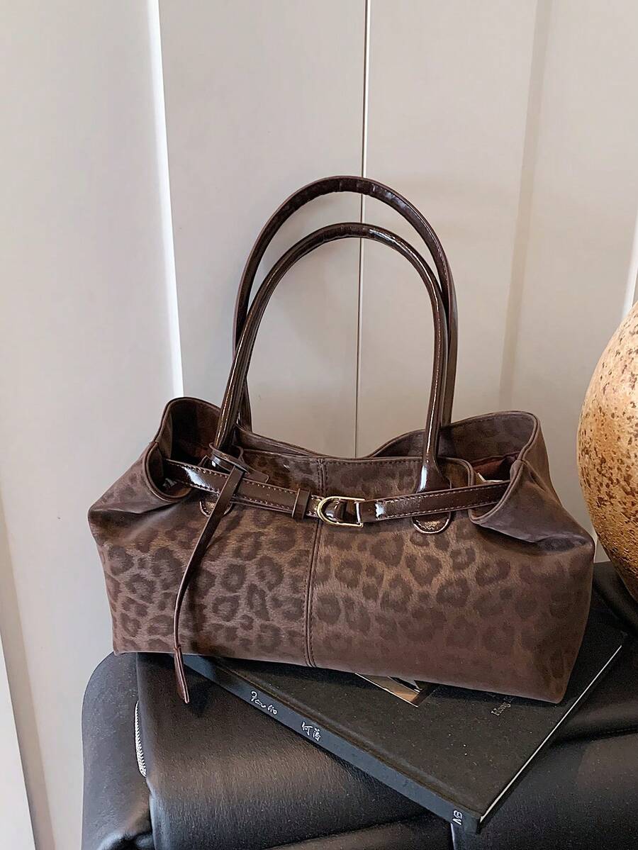 复古绒面革大容量休闲单肩托特包,拼布拼色托特包,优雅百搭女士通勤包