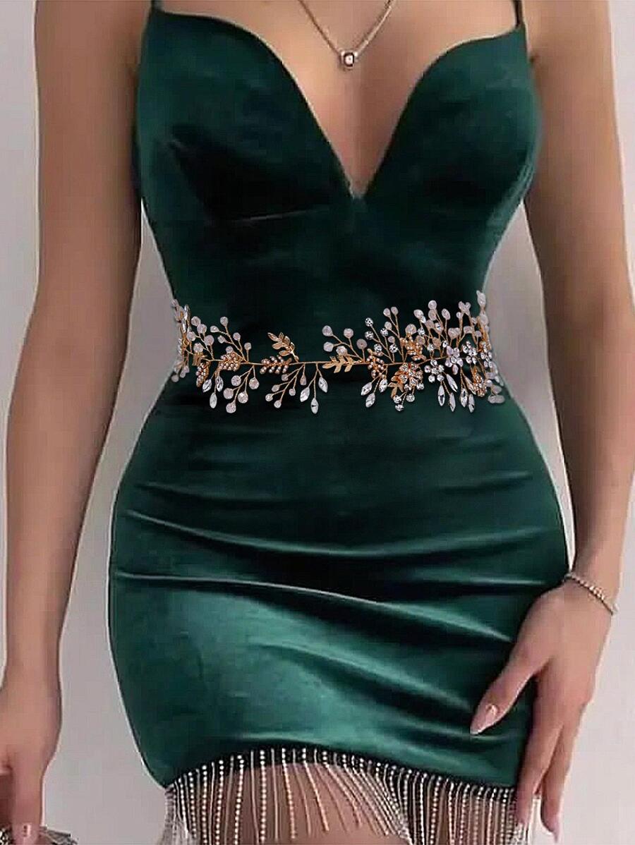 水鑽和花朵裝飾婚禮腰帶