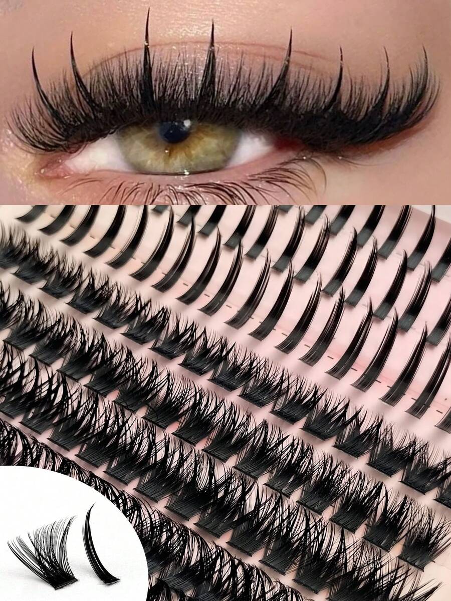 Rikuaild 140片假睫毛套装,包含尖刺仙女睫毛、动漫睫毛和100D蓬松柔软睫毛,二合一混合假睫毛,打造戏剧性妆容,提升您的美丽。在家即可DIY定制睫毛。