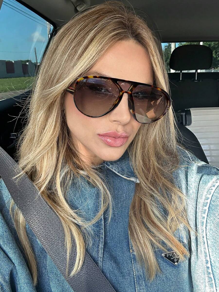 1 件装复古大框飞行员时尚眼镜,双桥徒步旅行者时尚女士时尚眼镜