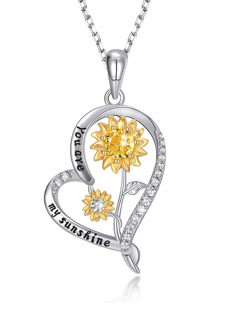FOREVER QUEEN S925純銀向日葵頸鍊女士心形頸鍊首飾,你是我的陽光吊墜項鍊,夏季珠寶禮物給女孩、媽媽、老婆