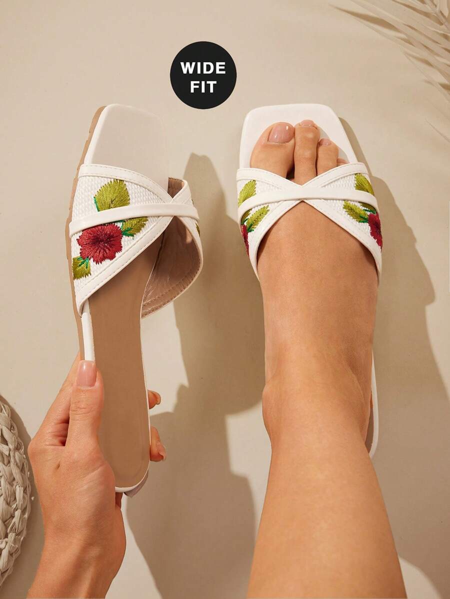 SHUZIA 女式宽版时尚舒适草编拉菲草带平底凉鞋