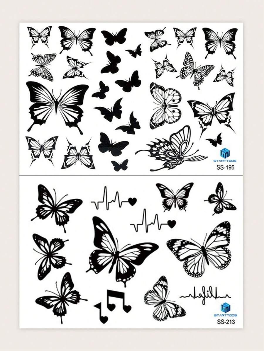 • STARTTOOS 1張黑色蝴蝶紋圖案y2k風格防水暫時性紋身貼紙, 腕部身體藝術 - 黑色 - 查看 6