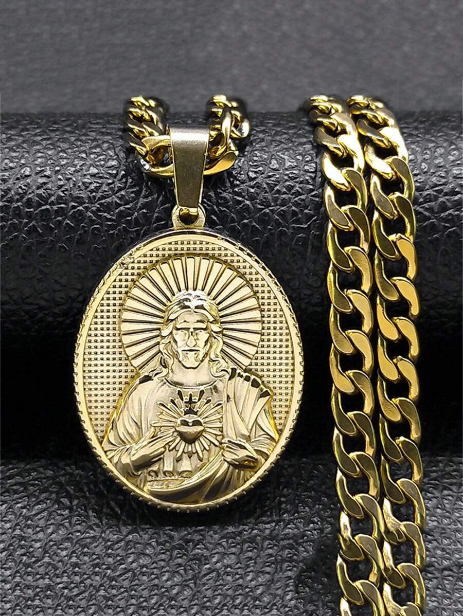 圣心耶稣天主教项链,男女皆宜,不锈钢金银吊坠项链,时尚配饰,情侣礼物