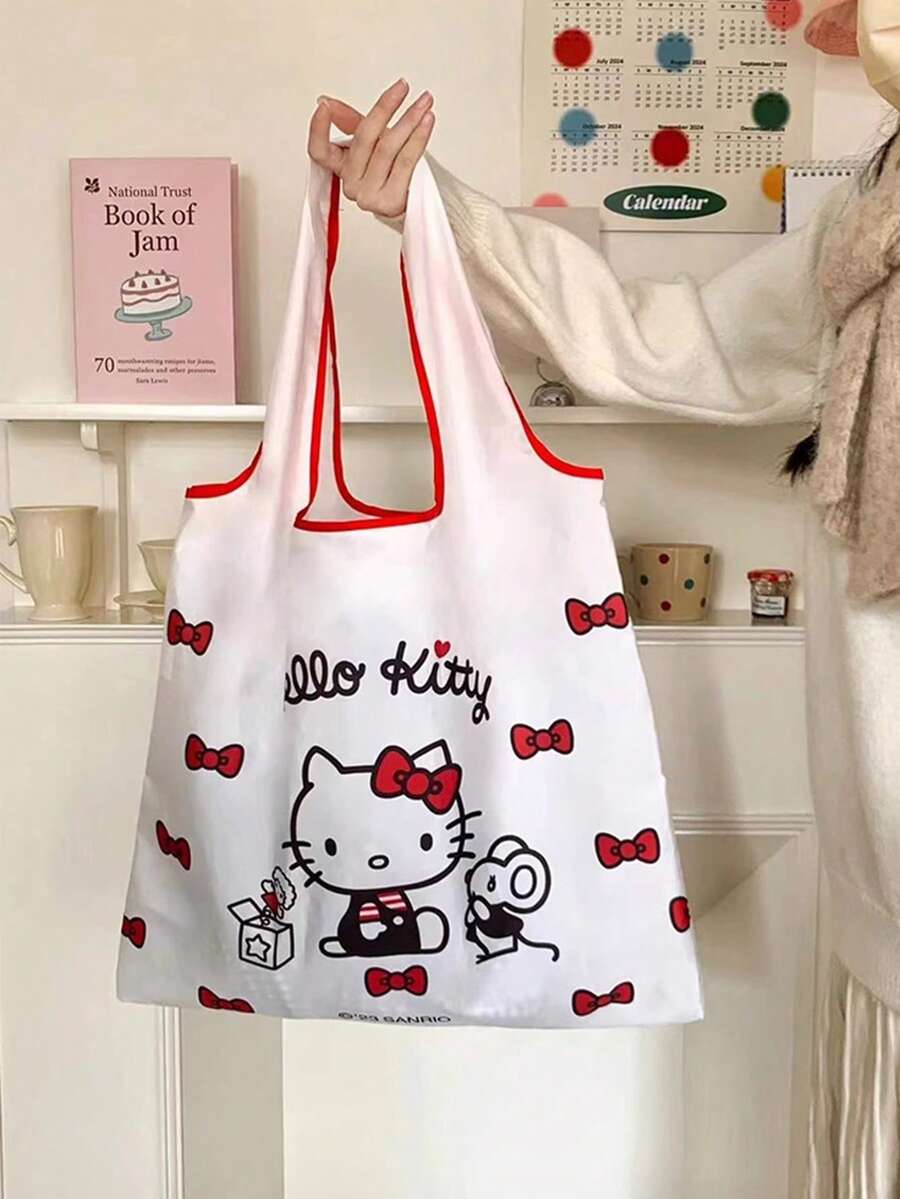 Sanrio Foldable Family Shopping Bag, cute cartoon designs (Hello Kitty, My Melody, Kuromi), reusable option, portable for daily shopping, stylish for teens, kawaii lovers, durable polyester fabric, tear-resistant matlean, ea to clean