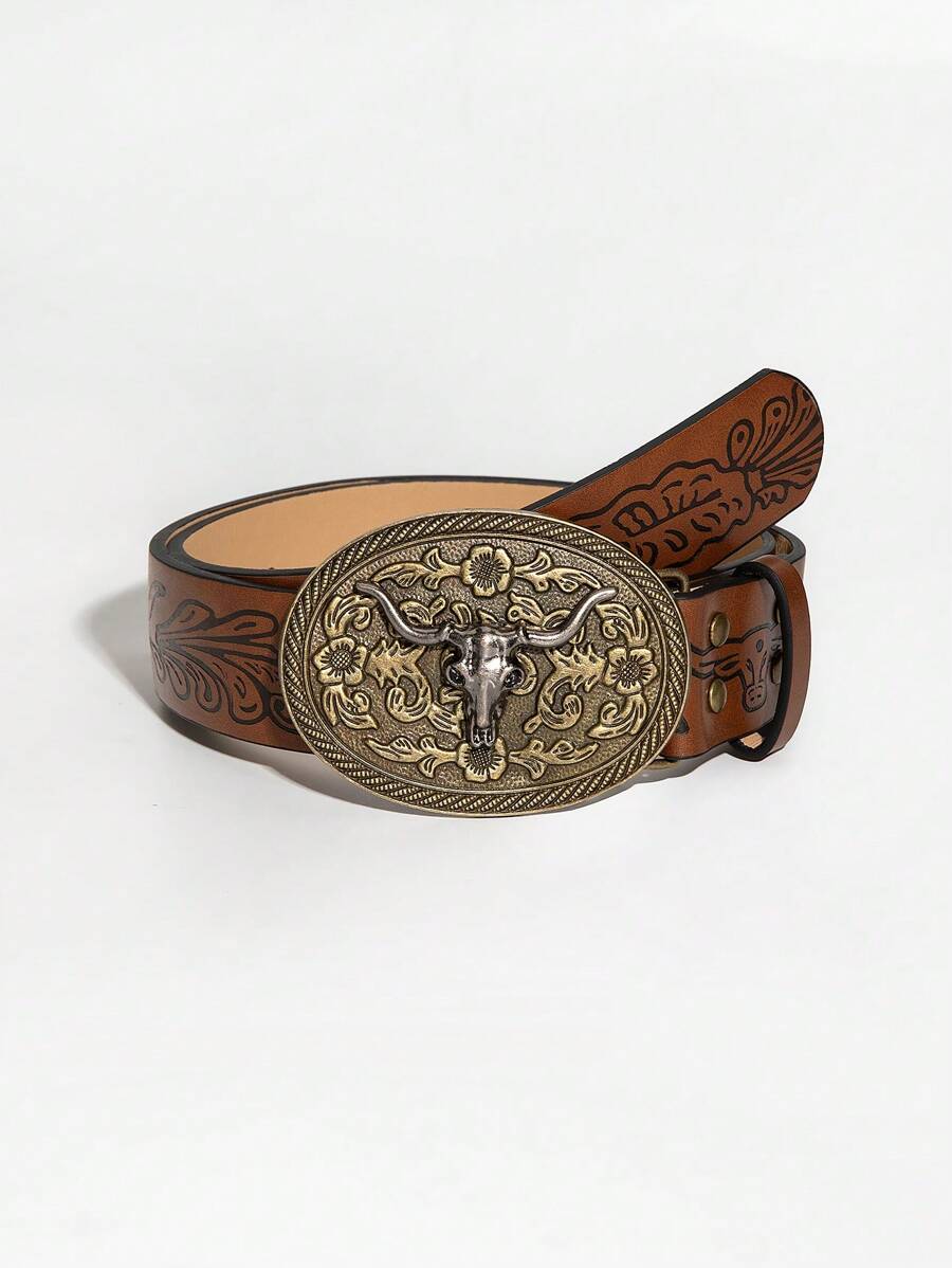 1 条女士西部牛仔风格压花复古带扣腰带音乐节夏季、学校