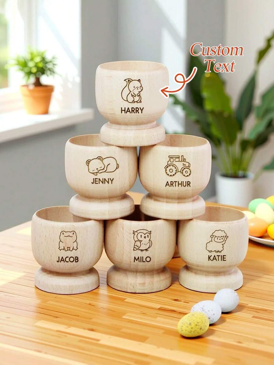 可定制名字的个性化蛋杯、木雕蛋杯、Dippy 蛋架、第一个复活节礼物、儿童艺术活动