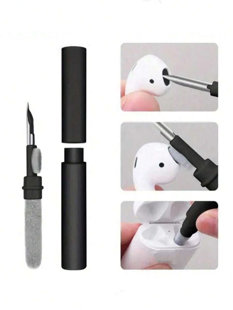 便携式黑色耳机清洁笔,三合一多功能清洁套装,配有软毛刷,适用于清洁无线耳机、耳机、充电盒配件、电脑、键盘等