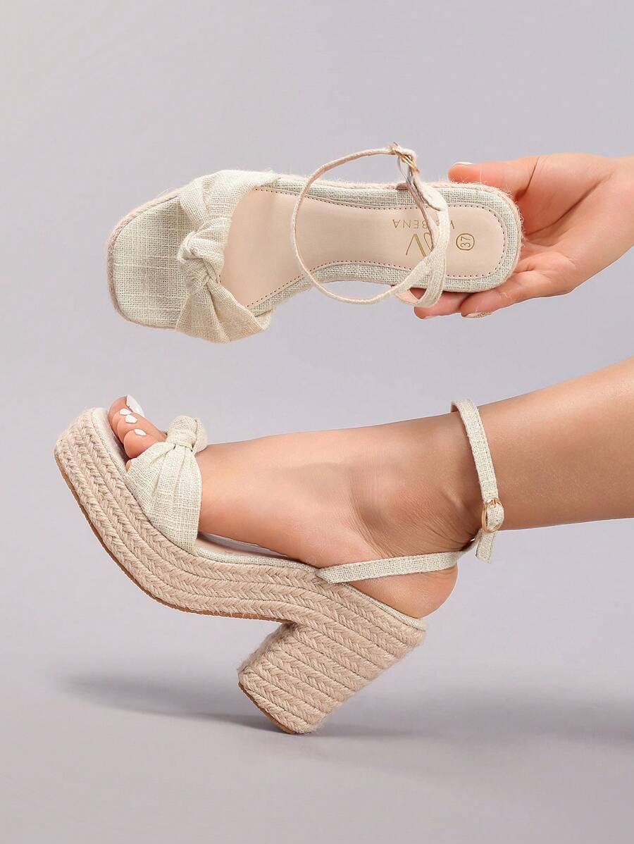 粗绳厚底坡跟凉鞋,扭纹露趾,夏季度假休闲高跟防水一脚蹬拖鞋,女士日常时尚鞋