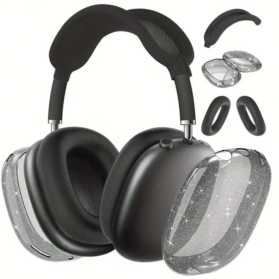 亮片兼容 Airpods Max 保护套(2024/2020),防刮耳垫保护套/耳罩套/头带套兼容 Airpods Max(USB-C/Lightning)。透明柔软 TPU 和硅胶,防刮皮肤
