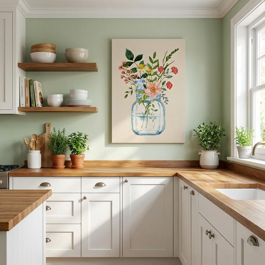 1件现代墙面艺术画,优雅花束,极简插画,植物装饰,适用于客厅、浴室、卧室