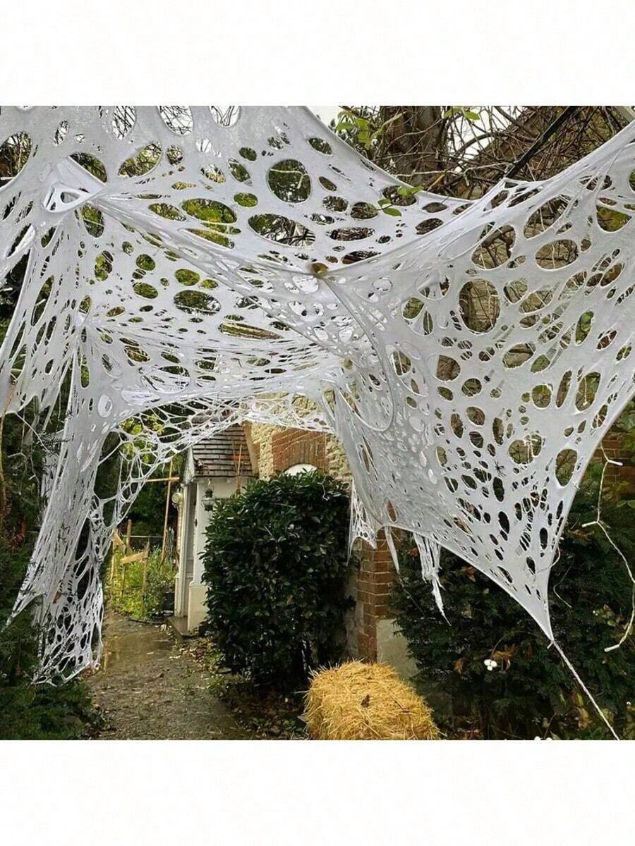 万圣节蜘蛛网装饰 - 10 英尺弹性万圣节蜘蛛网,具有逼真的孔设计,适合室内和室外使用 - 鬼屋、庭院、草坪、派对装饰 - 易于安装,无需工具,可重复使用且适合 DIY