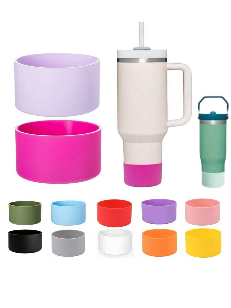 硅胶套,适用于 20-40 盎司的杯子、12-24 盎司的水瓶以及其他底部直径为 2.8-2.95 英寸的水瓶/杯子,也适用于真空杯、广口水瓶和不锈钢水瓶。