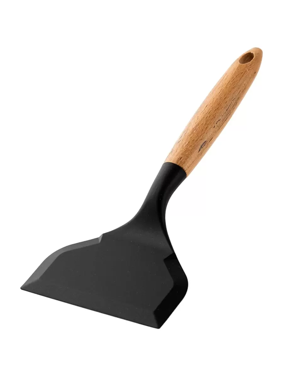 矽膠寬鍋鏟,帶木柄,不沾煎餅,魚,雞蛋,餅乾,煎蛋鏟,靈活適用於不沾鍋(黑色)