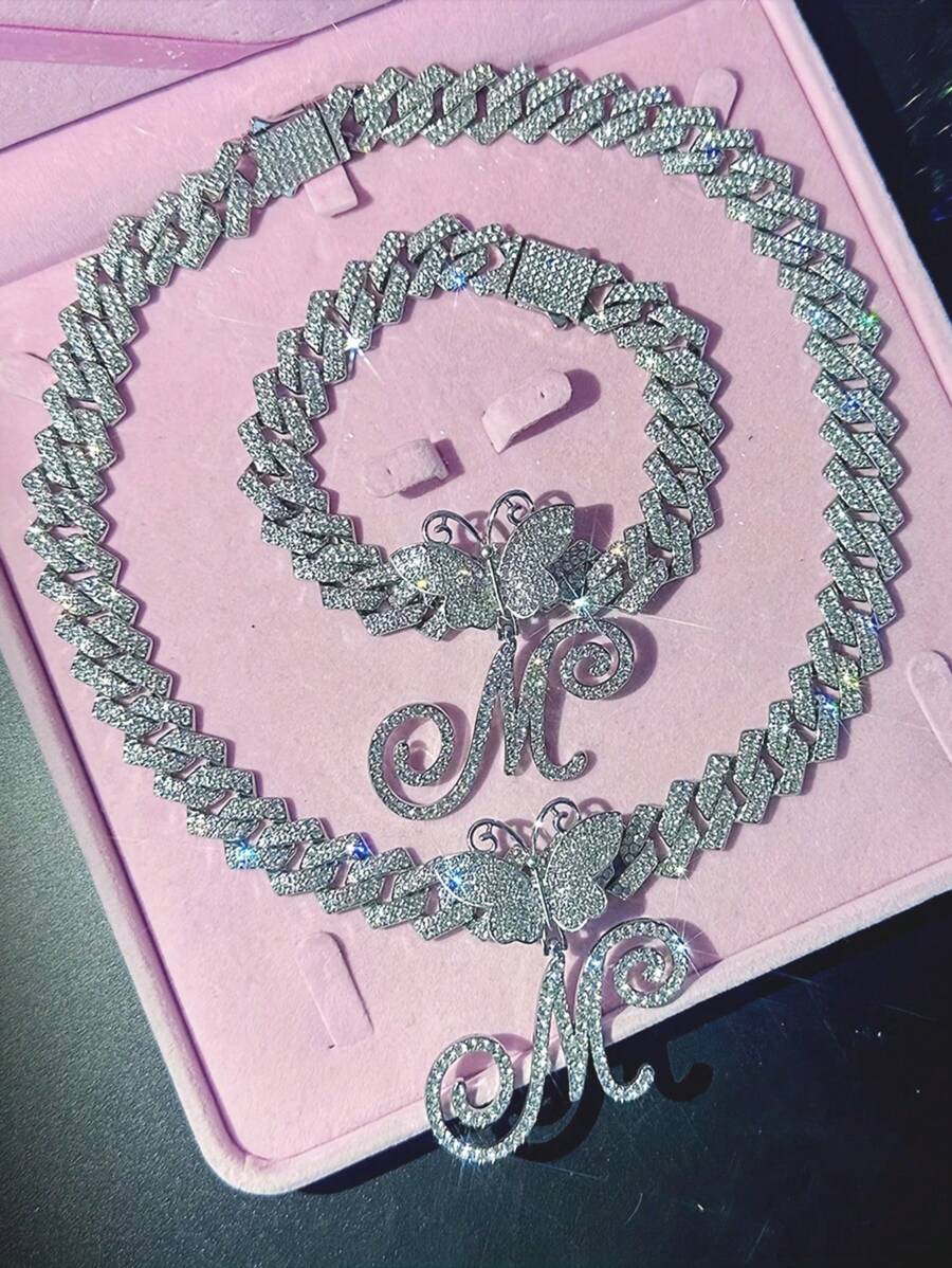 • 银色女士项链 A-Z 首字母个性化嘻哈经典蝴蝶字母吊坠链项链和手链套装饰物 26 个幸运字母,适合男女日常佩戴情人节时尚珠宝礼物,妈妈,母亲,母亲节,礼物 - 蝴蝶型 - 查看 2