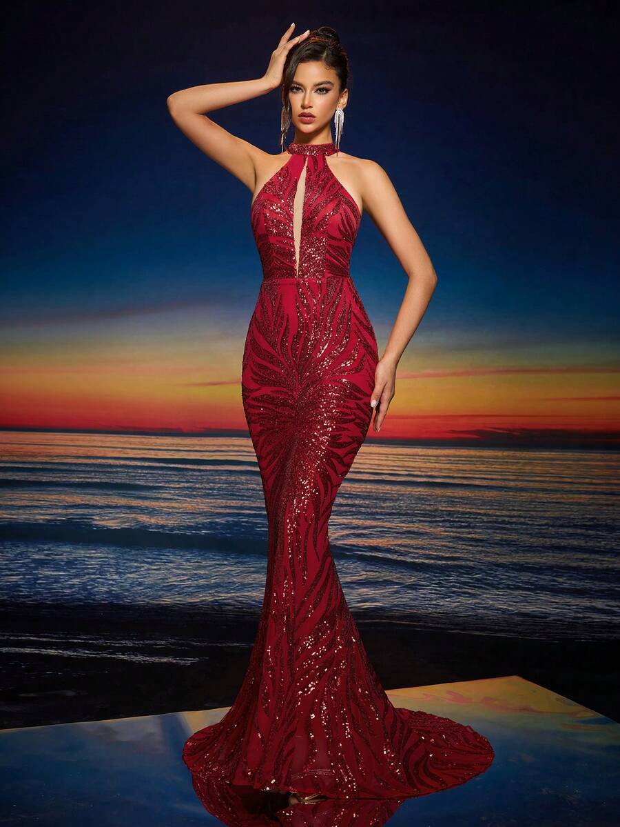 AOSHABABI 上衣“独家亮片”镂空设计鱼尾下摆长款修身迷人女士晚礼服(重量级)适合所有正式场合、音乐节、联欢晚会、婚礼嘉宾、节日派对、毕业舞会、鸡尾酒会、约会、度假和伴娘礼服、派对礼服