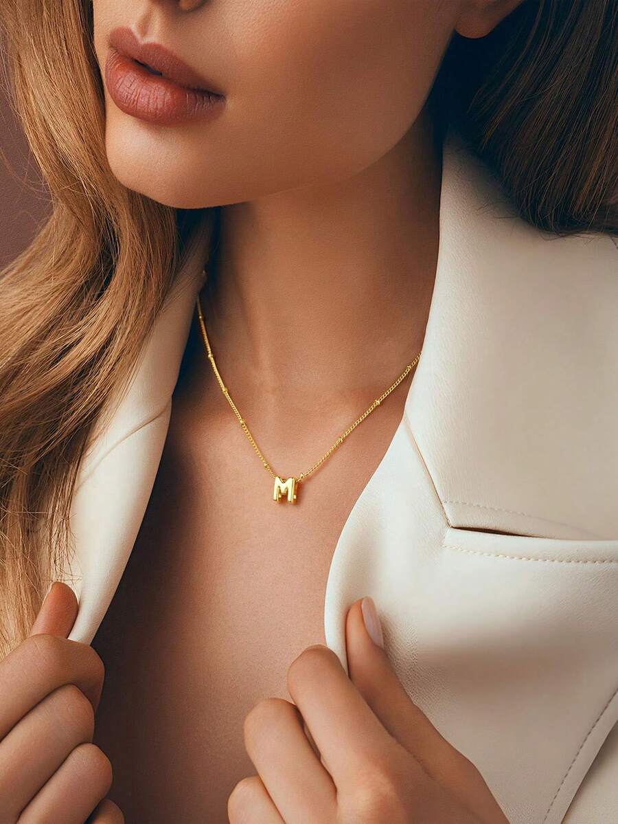 小巧立体字母气球3D字母镀金吊坠项链,女士个性化珠宝