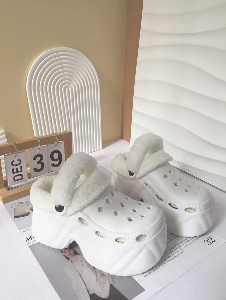 纯色保暖家居拖鞋,蓬松隔热衬里,厚防滑鞋底,冬季毛绒舒适鞋,高跟款