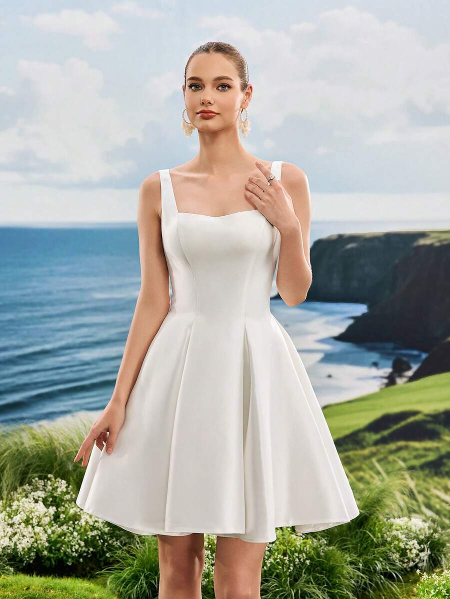 夏季巴洛克缎面生日派对婚礼宾客短礼服,白色优雅新娘送礼会礼服,新娘