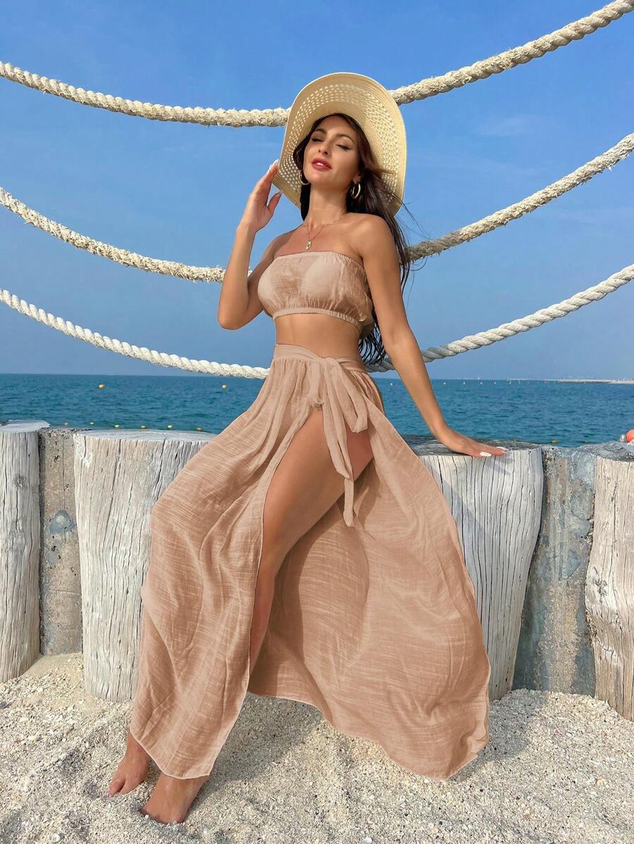 Swim Vcay 2 件套女士海滩夏季抹胸和罩衫套装