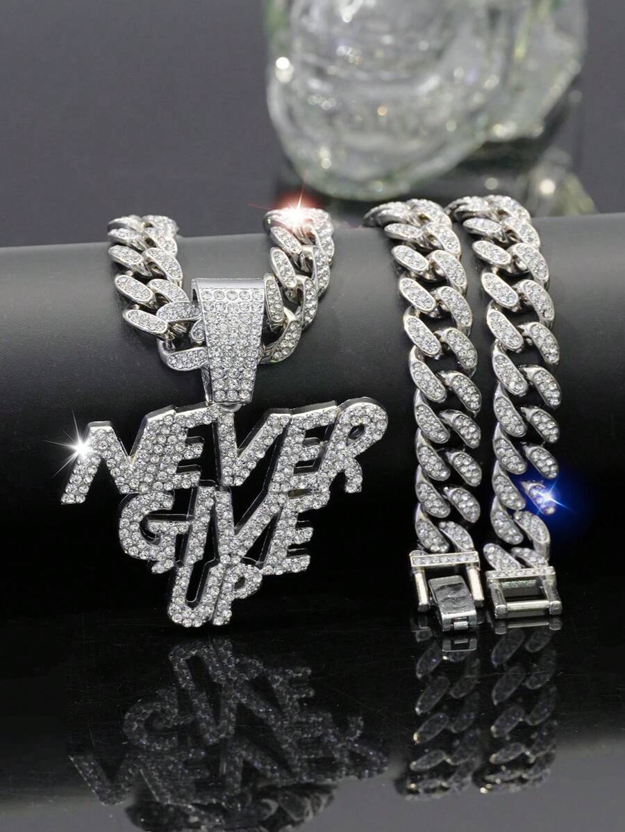1 件 Never Give Up 吊坠、男士项链、冰晶魅力链首饰,适合日常佩戴